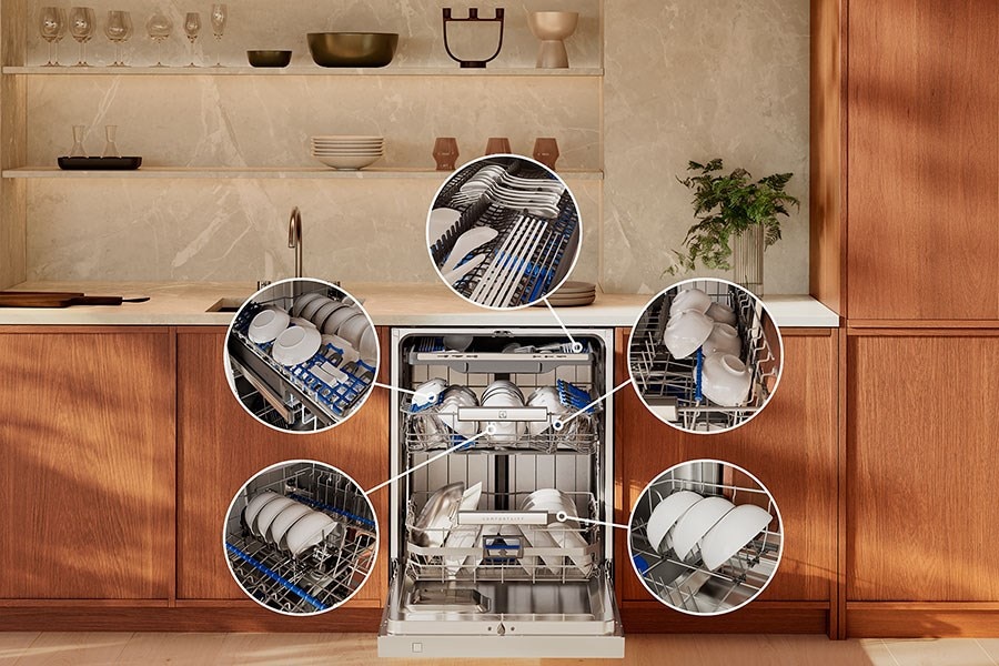 SpaceFlex 靈活餐具擺放空間 (中式碗籃) 針對亞洲餐具設計的中式碗籃提供更高效的碗盤清潔與乾燥。讓您可以輕鬆地根據每次洗滌需求進行調整。不論是中西式大盤小碟,還是各種形狀和尺寸的刀叉及餐具,都能輕鬆放入,甚至還有專為筷子設計的專屬配件。無論您的烹飪習慣如何,機器都能輕鬆裝載,並確保每次清洗都達到最佳效果。細緻玻璃餐具保護設計