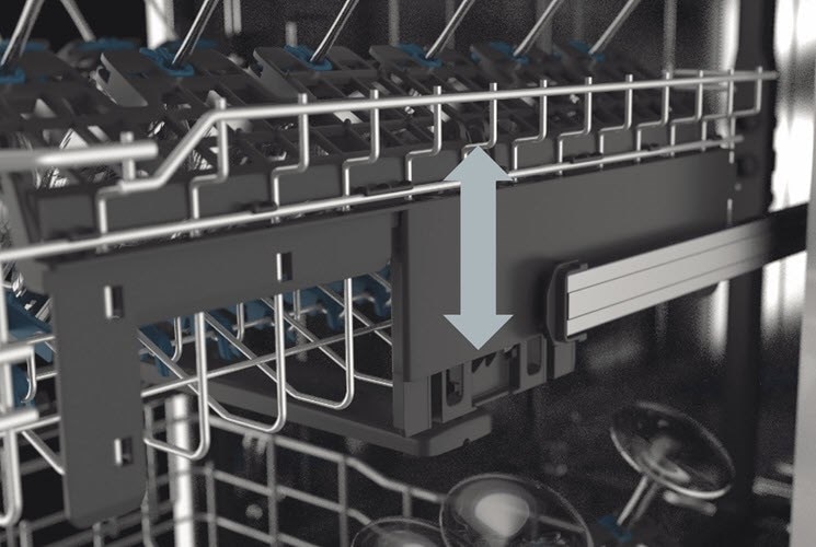 再也不需要擔心大型的碗盤及餐具放不進洗碗機中只能手洗的困擾;可以輕鬆調整上碗籃的高度,讓大型且占空間的碗盤在擺放上更有彈性,大大地增加使用上的便利性