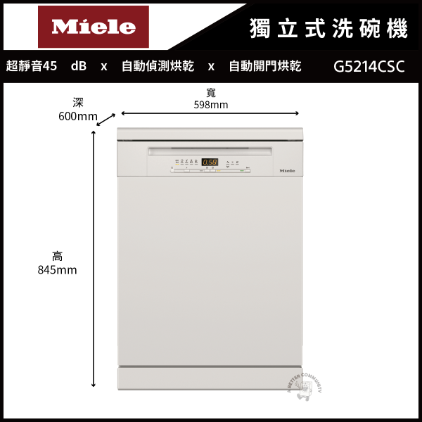 MIELE,米勒,獨立式洗碗機,G5214CSC,MIELE獨立式洗碗機,米勒獨立式洗碗機