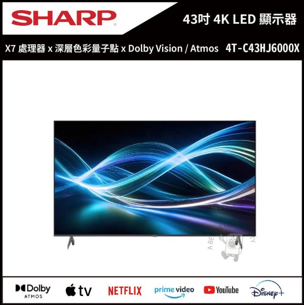 【SHARP夏普】43吋 4K HDR AQUOS LED Google TV聯網顯示器 (4T-C43HJ6000X),【祥建家電】一對一家電規劃顧問 | 歐美日韓品牌電器專售 | 線上家電展