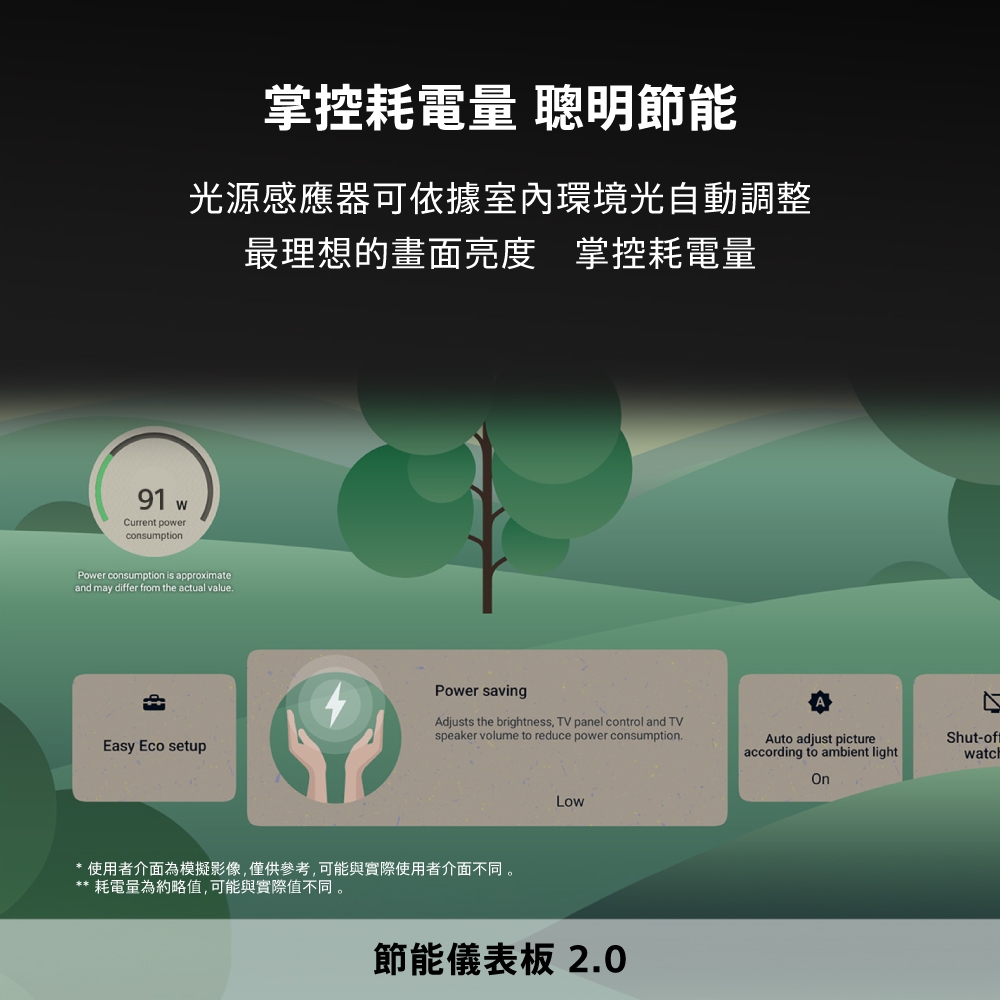 | 圖像模式 | 生動、標準、劇院、專業、冷靜、相片、IMAX Enhanced、Dolby Vision (生動/明亮/黑暗/遊戲)、FPS 遊戲、RTS 遊戲 |