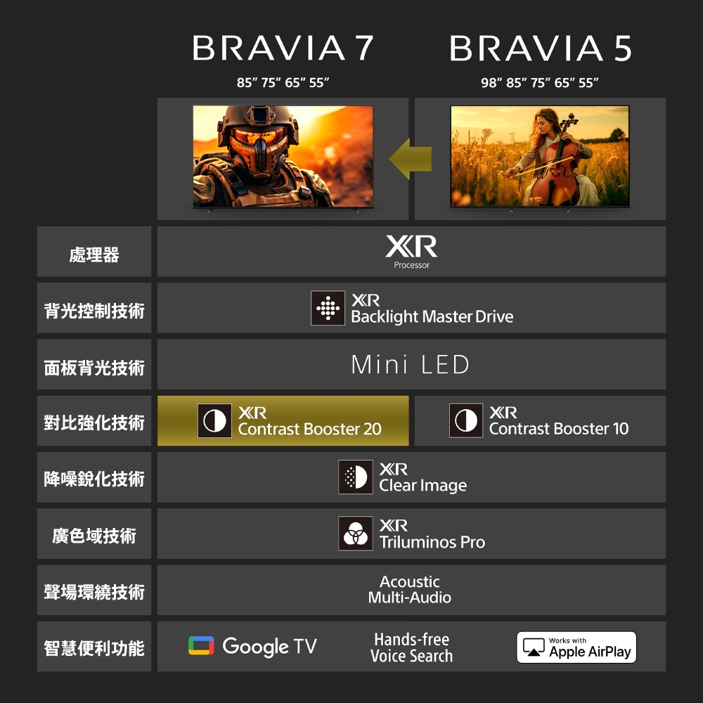 | 對比強化 | XR Backlight Master Drive、XR Contrast Booster 10、動態對比增強器 |