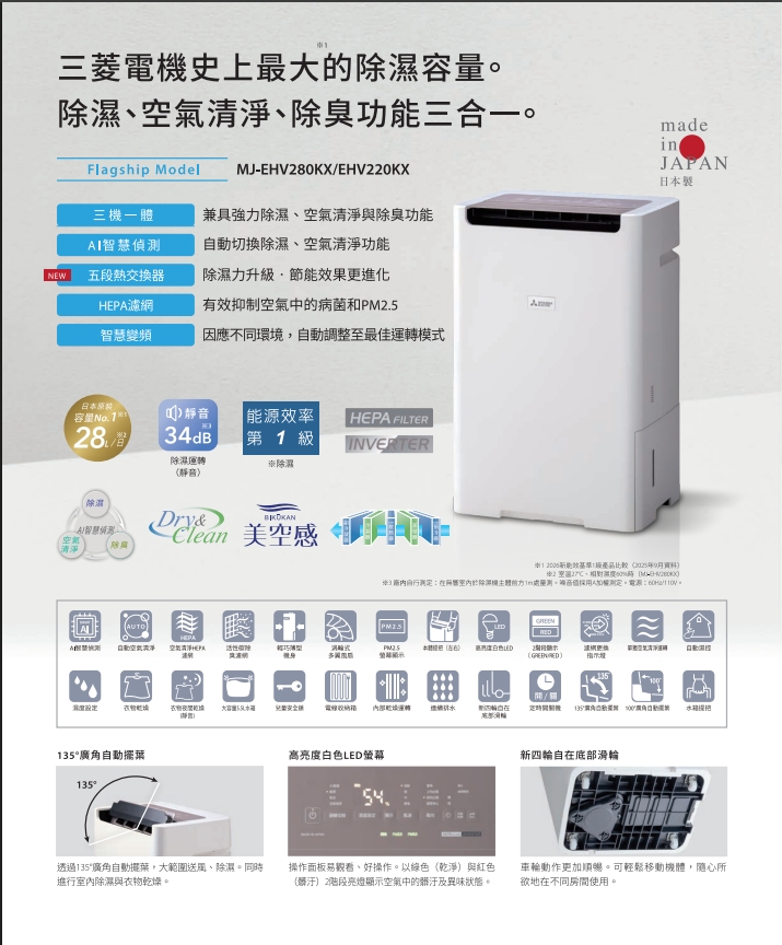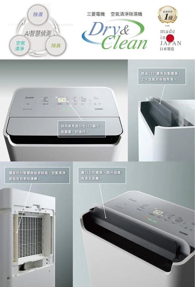 Mitsubishi,三菱,日本製,1級變頻,三重除濕,清淨,除濕機,