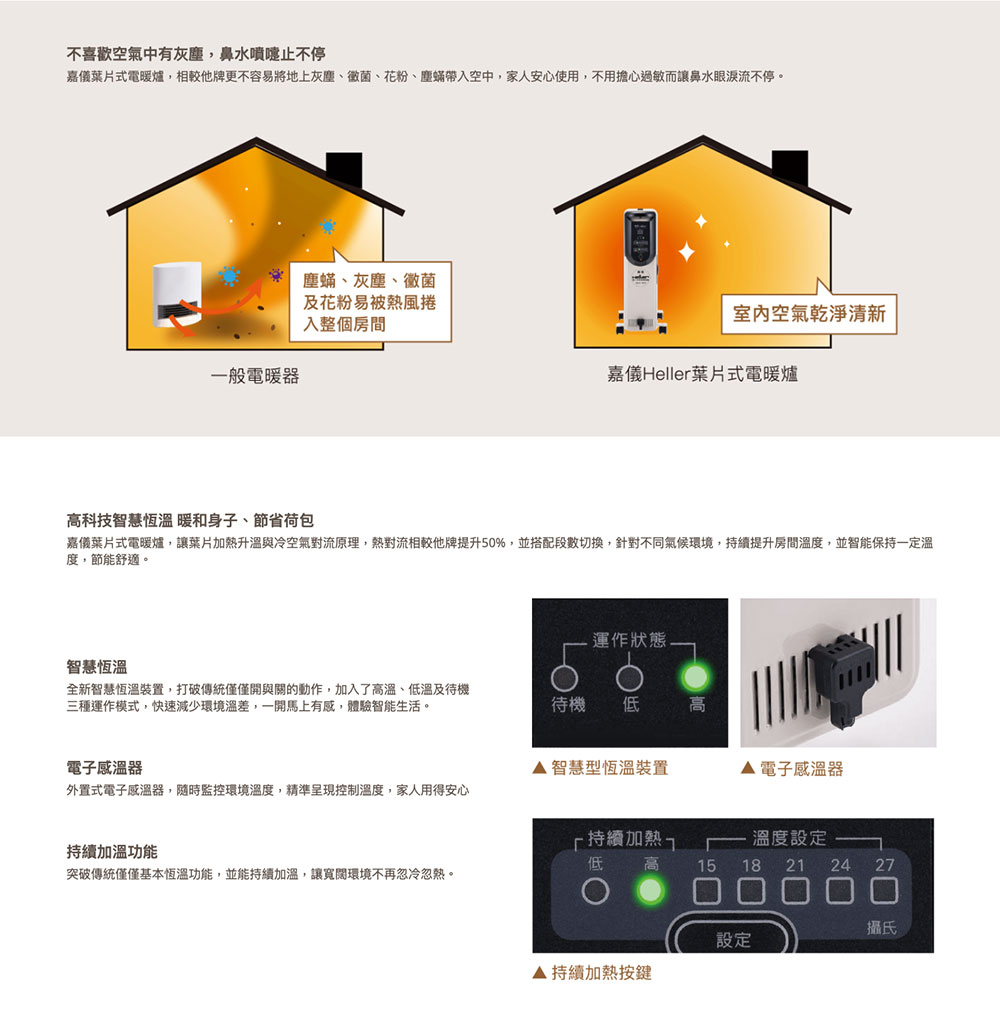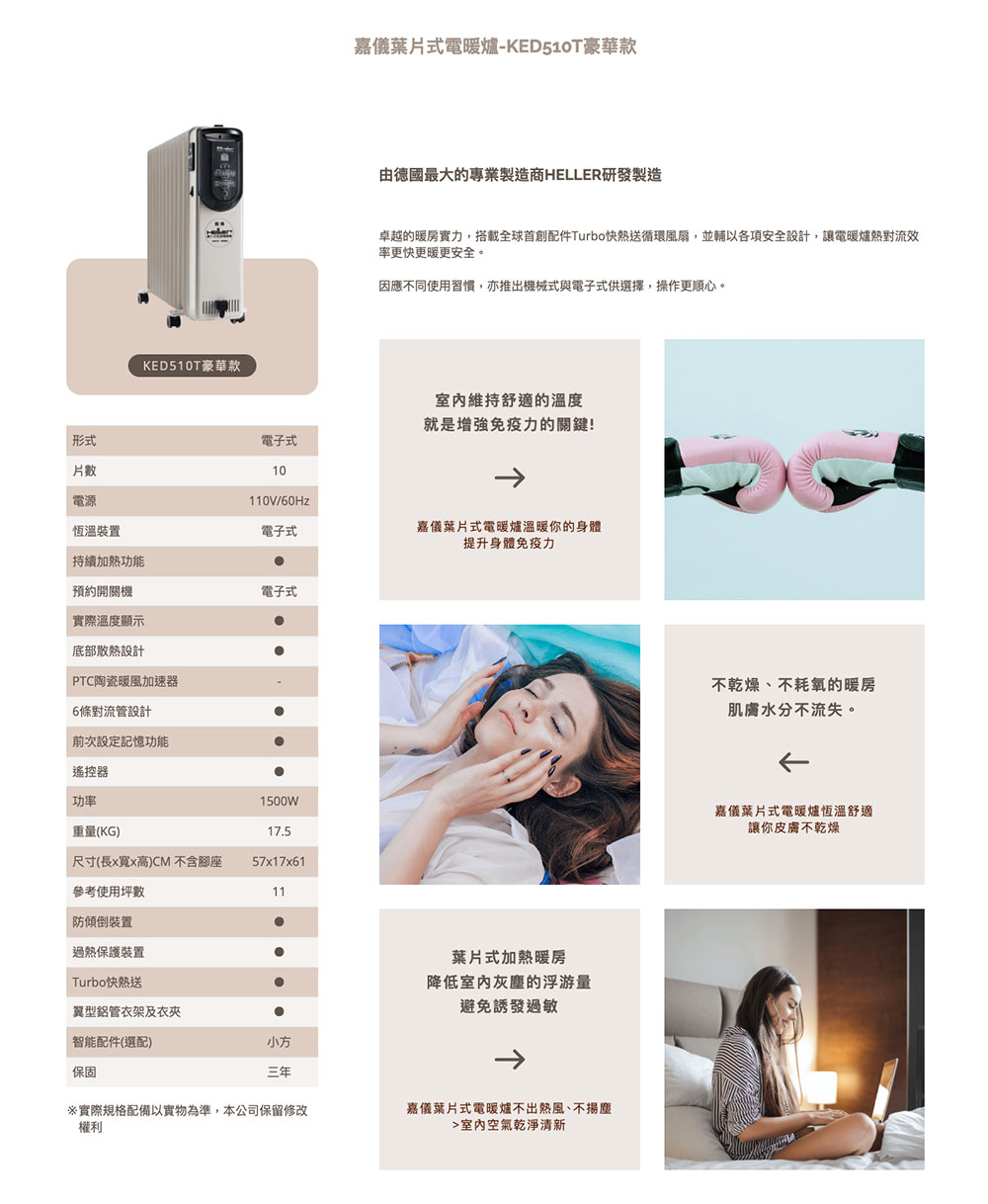 【HELLER嘉儀】10片葉片電子式電暖器 (KED510T豪華款),【祥建家電】一對一家電規劃顧問 | 歐美日韓品牌電器專售 | 線上家電展